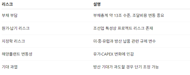 한화오션 투자 리스크 요인